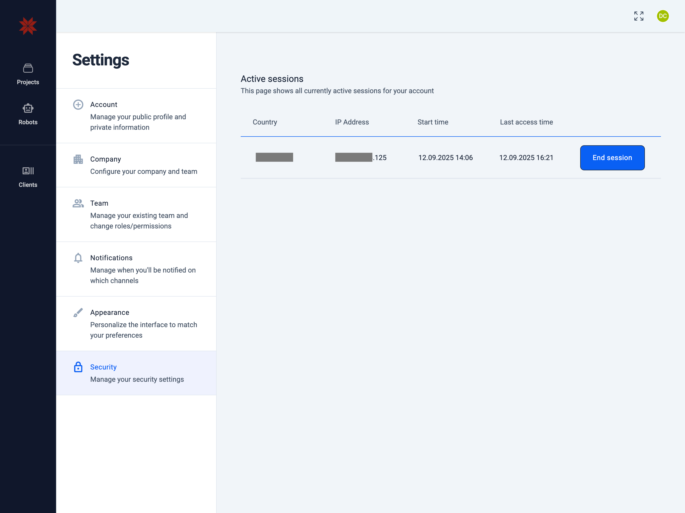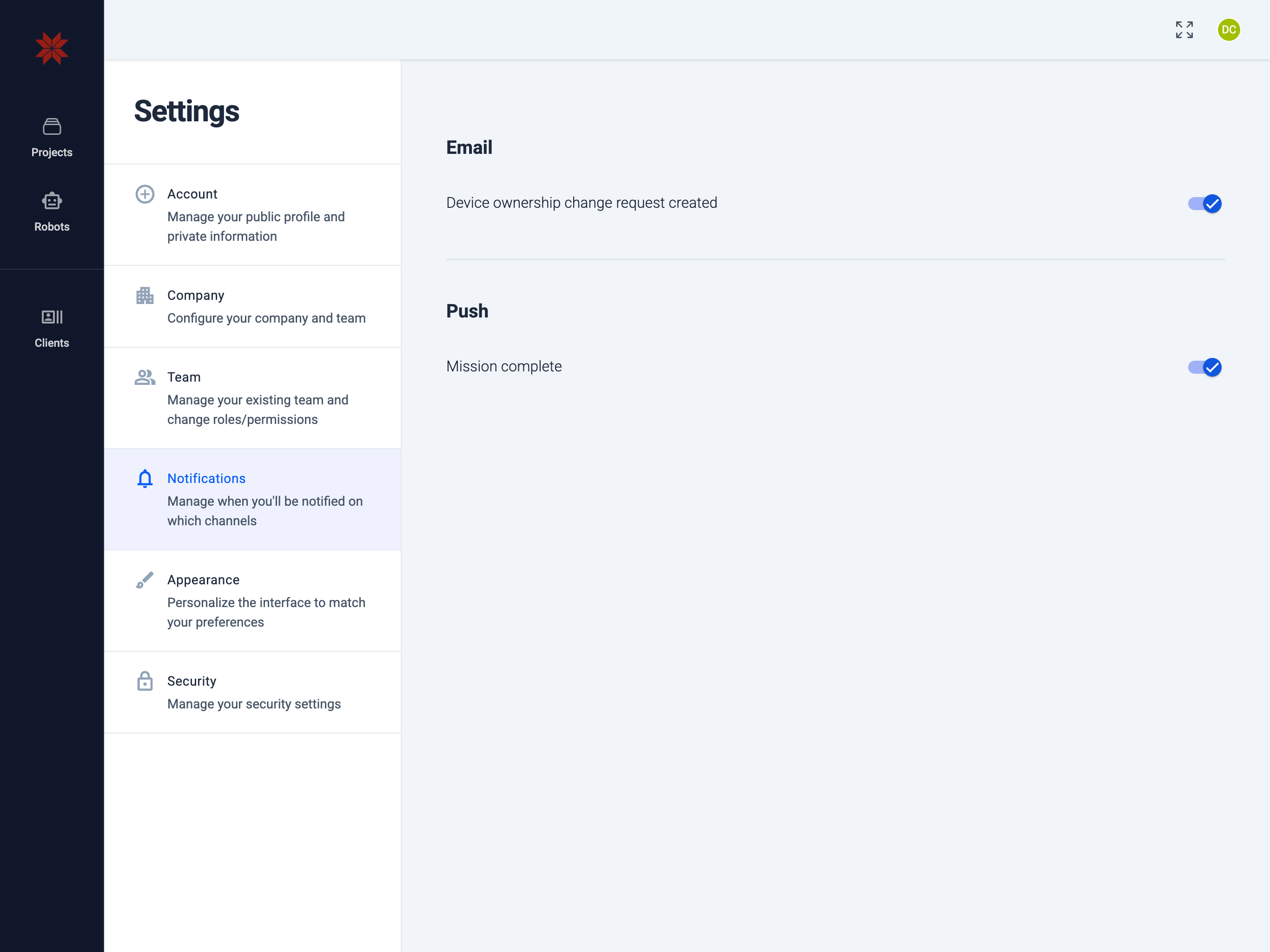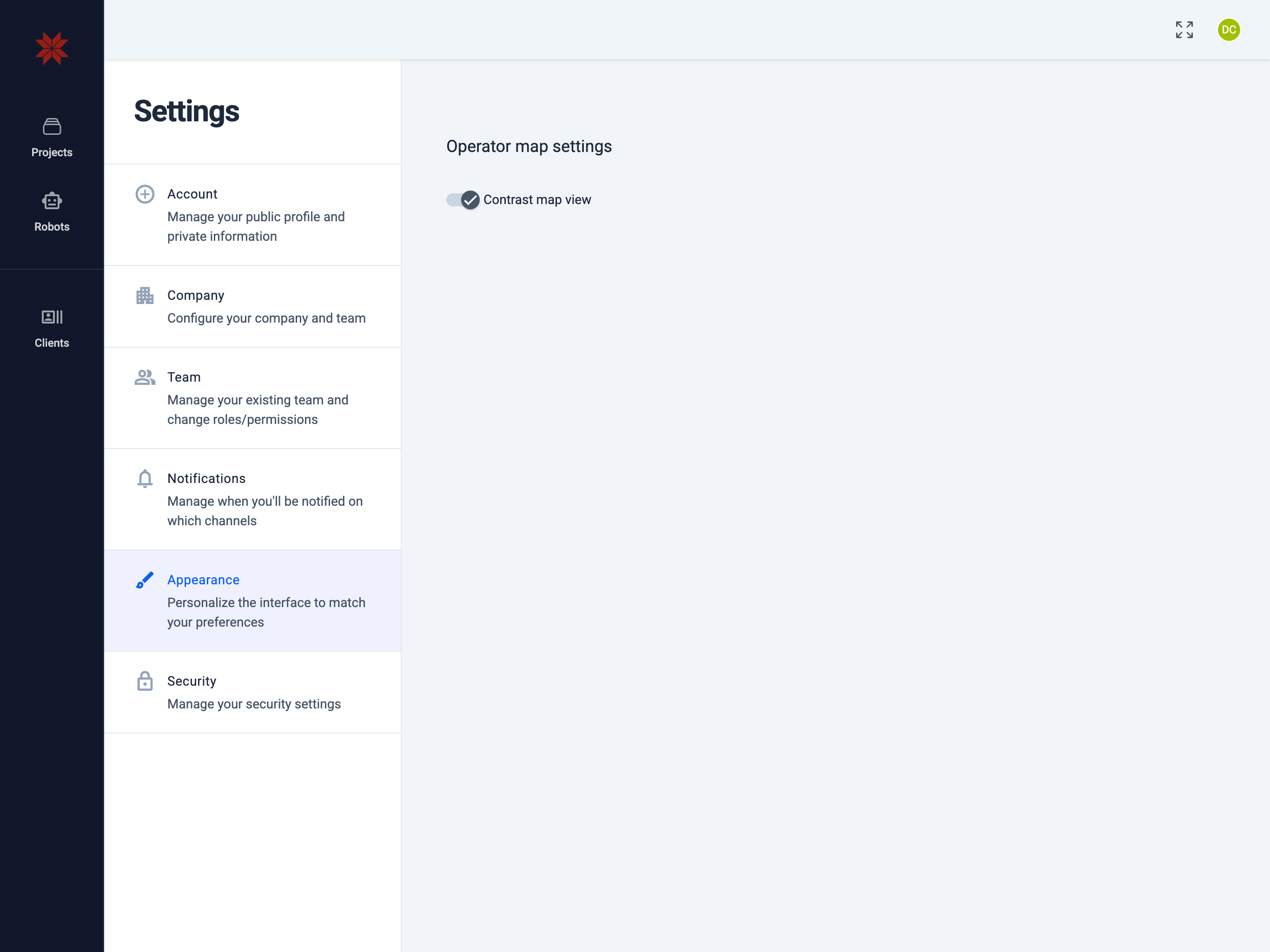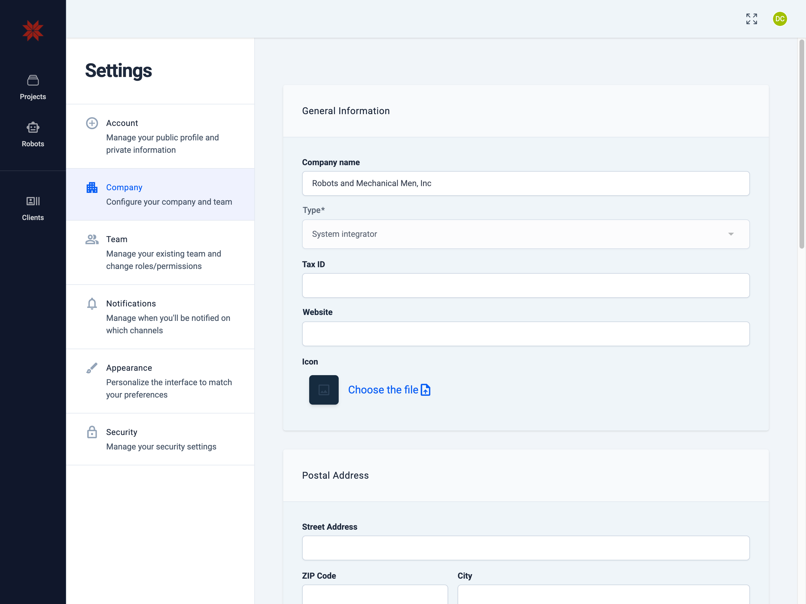 Overview of admin profile features, allowing you to view and manage account, company, team, notifications, appearance, and security settings.