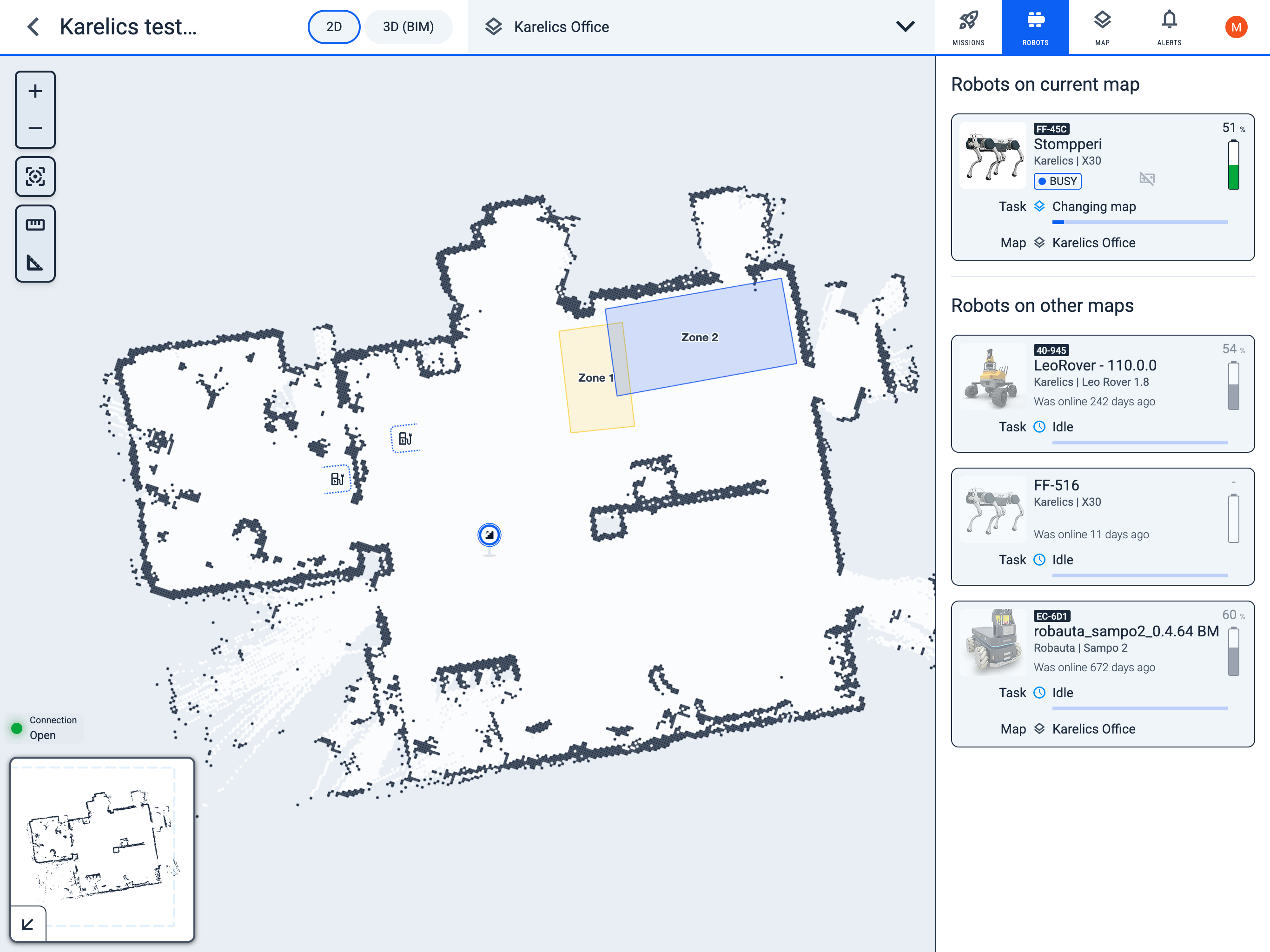 See the list of all robots assigned to this project, monitor their statuses, and access detailed robot-related information.